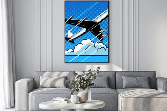 pop art, samolot, niebo, rysunek, ilustracje, retro, sztuka, nowoczesny