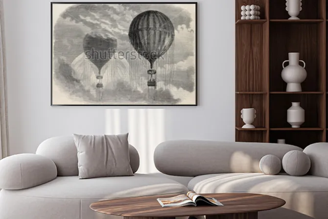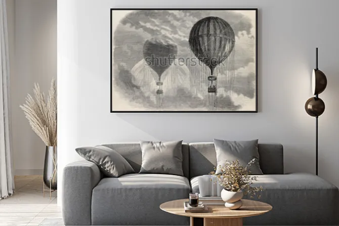 Stara ilustracja dziwnych zjawisk optycznych podczas wniebowstąpienia aerostatu w Paryżu, 15 kwietnia 1868. Stworzony przez Blancharda w Cossona-Smeetona, opublikowany w L’Illustration, Journal U.