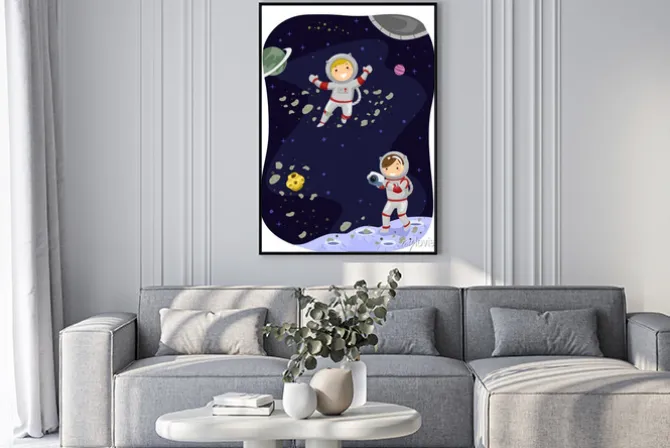 galaktyka, astronomia, planety, księżyc, rysunek, grafika, ilustracje, pokój dziecięcy, fotografia