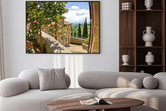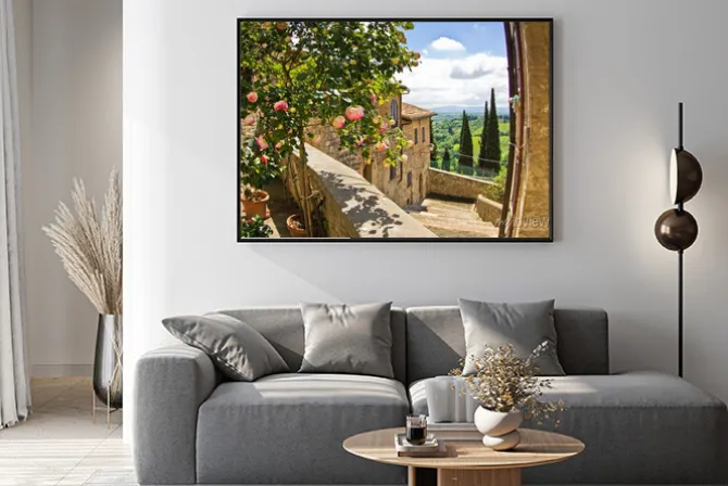 Plakat: Toskańska architektura z widokiem na pola