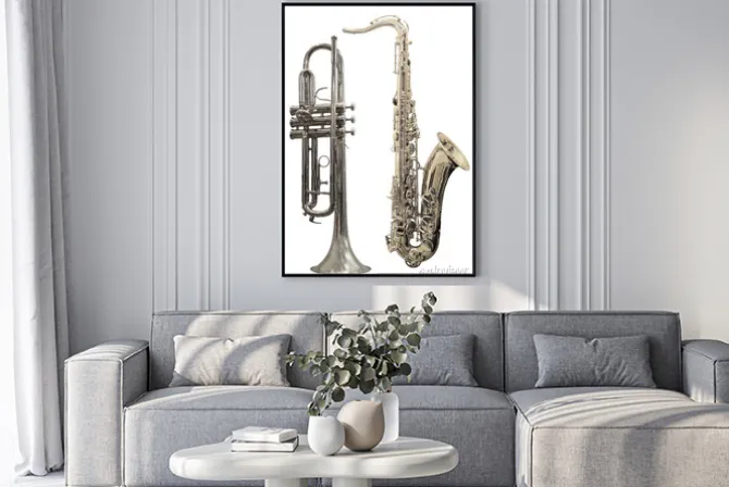 jazz, muzyka, instrumenty, biały