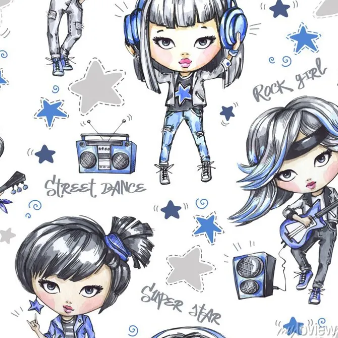 Tapeta: Akwarela bez szwu deseń z teenage dziewcząt muzycznych. nowoczesne