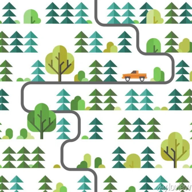 Tapeta: Bezszwowe tło – las. leśna droga. podróż samochodem przez las
