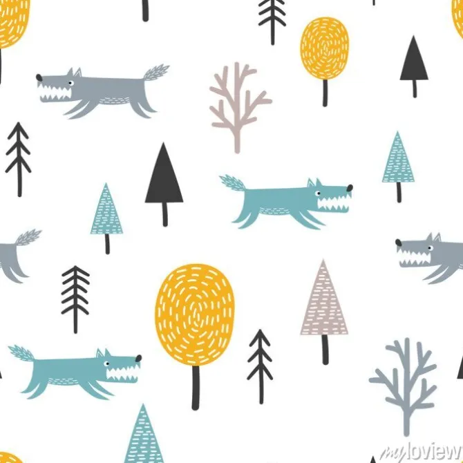 Be the first to review “Tapeta: Jednolity skandynawski wzór z uroczym wilkiem i drzewami. tło” Anuluj pisanie odpowiedzi