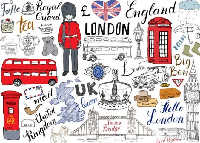 Ręcznie rysowane elementy Londynu.