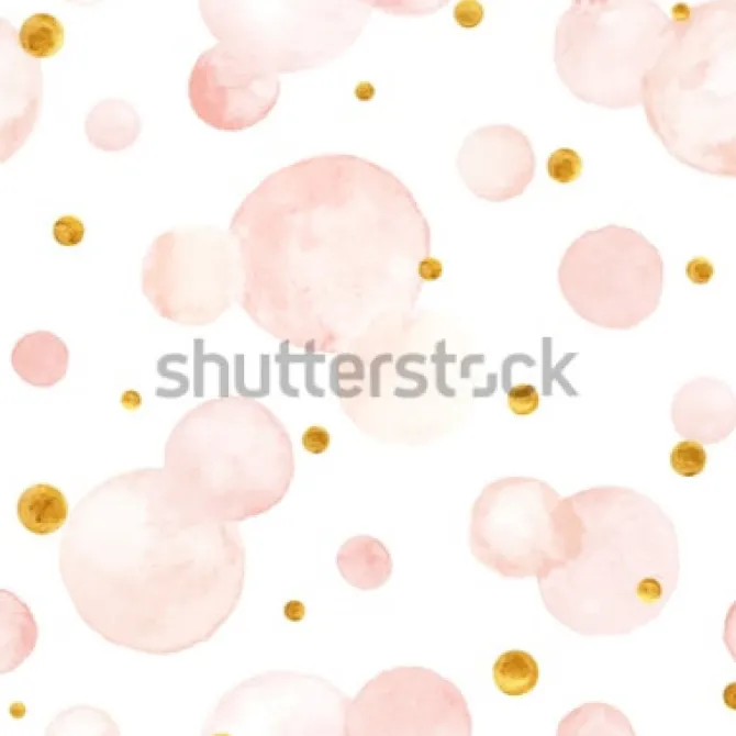 Różowe i złotawe akwarelowe kropki na białym tle.
