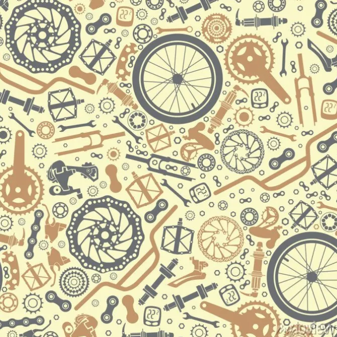 Seamless pattern of bicycle parts. Vector image..