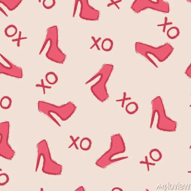 Wektor bez szwu sexy wzór. Moda różowe buty szwu. Vector ilustracją letterig xoxo i różowe buty na jasnym tle..