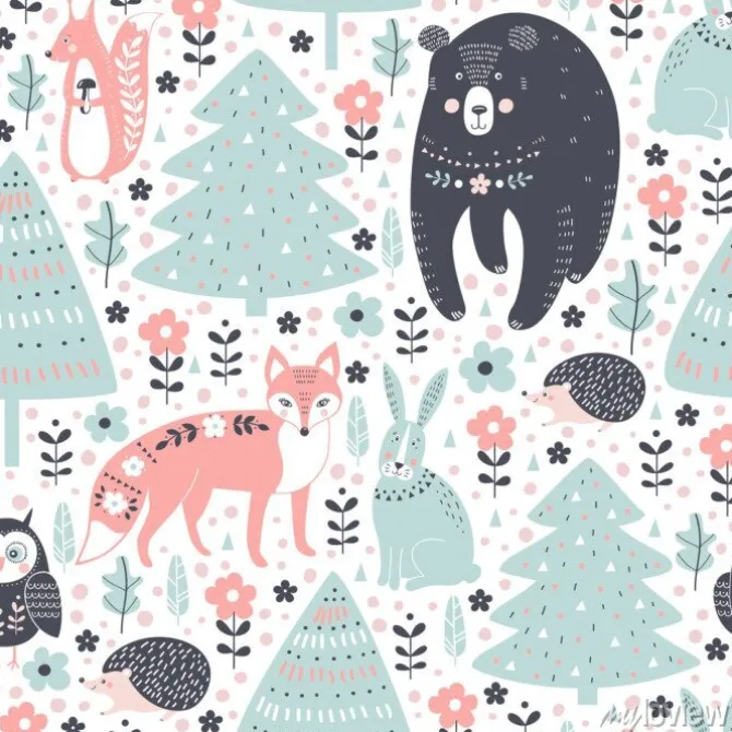 Be the first to review “Tapeta: Wektorowy bezszwowy wzór z lasowymi zwierzętami: lis, niedźwiedź,” Anuluj pisanie odpowiedzi