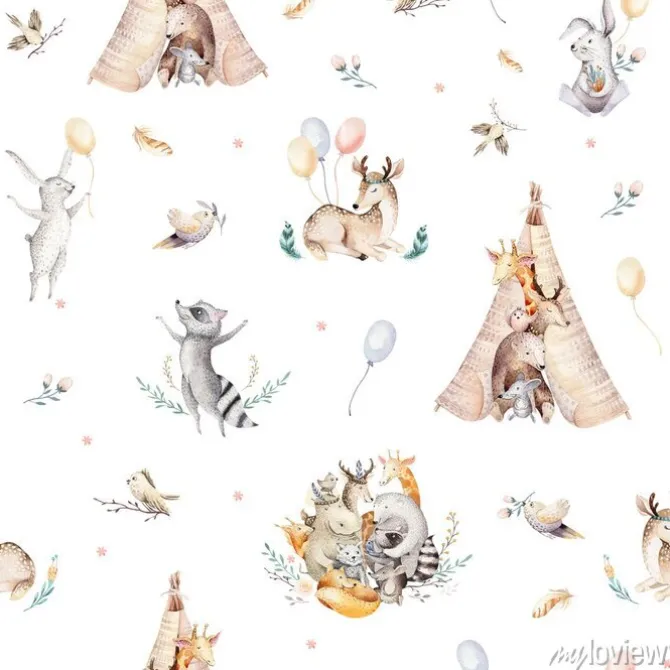 Wzór boho w leśne zwierzątka dla dzieci.