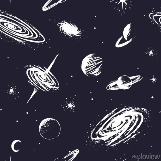 Wzór przestrzeni wektorowej. Elementy wszechświata. Projekt projektu do pakowania, sukienki lub t-shirty. Ręcznie rysowane stylu.
