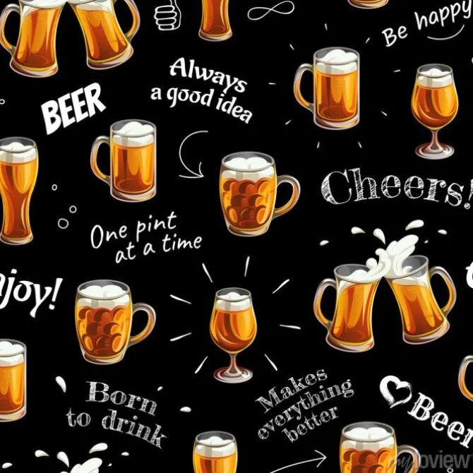 Wzór ze szklankami piwa i napisami.